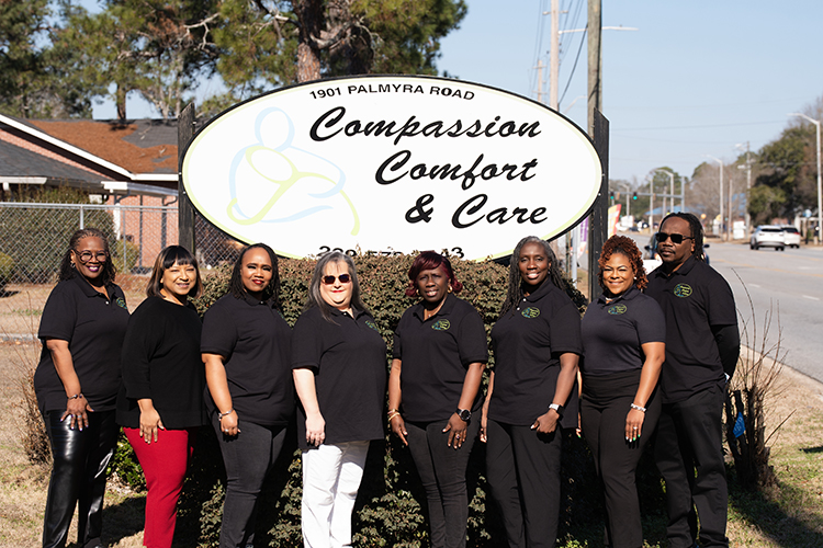 In addition, we create positive working environments for our staff. All staff are treated with dignity and respect. We’re compassionate to our staff, so that we can equip them with the necessary tools to go out into the community and pass that same care and compassion on to our clients and families. One motto here at Compassion, Comfort, and Care is "Compassion is contagious."